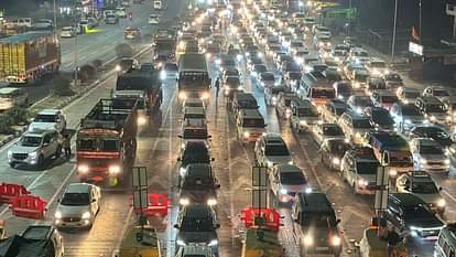 टोल प्लाजा पर लगी वाहनों की कतार