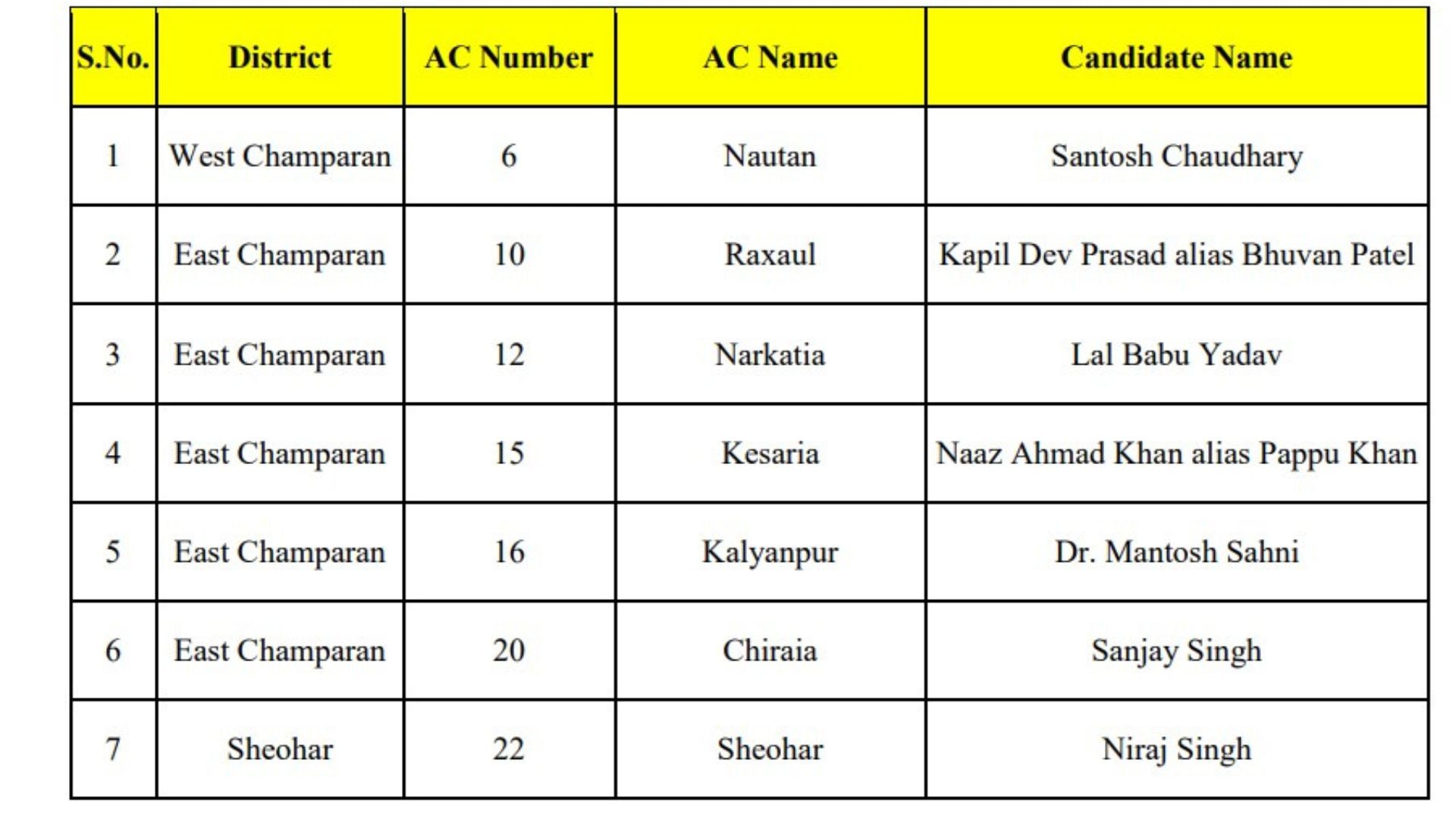 बिहार विधानसभा चुनाव में पूर्ण बहुमत से सरकार बनाने का दावा करने वाले प्रशांत किशोर की की पार्टी ने आज अपने 65 उम्मीदवारों के नाम की घोषणा कर दी है। आईए जानते हैं किसे कहां से प्रत्याशी बनाया गया है?
