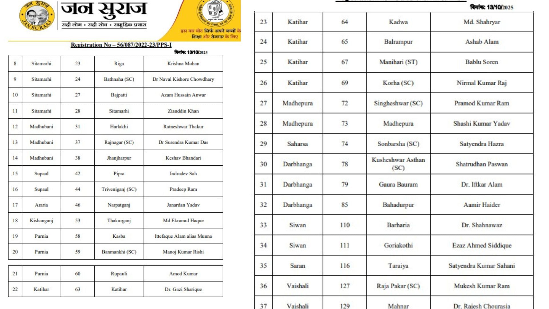 Bihar Election 2025: जनसुराज की दूसरी लिस्ट जारी, 65 सीटों पर उतारे प्रत्याशी; देखें पूरी लिस्ट