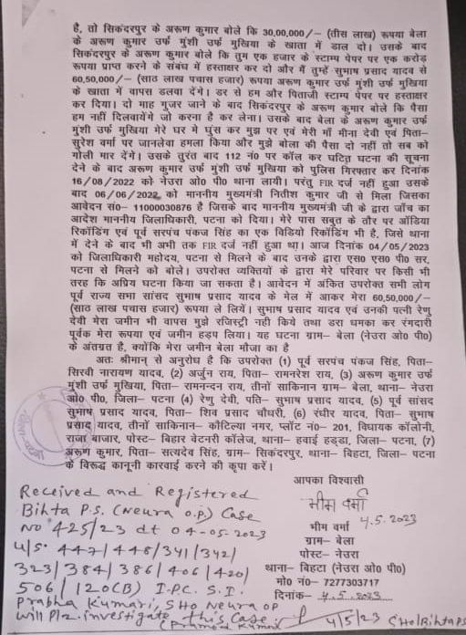 जानकारी के मुताबिक, पूर्व सांसद सुभाष यादव वर्षों से फरार चल रहे थे। इससे पूर्व में पुलिस के द्वारा एयरपोर्ट थाना अंतर्गत उनके फ्लैट में कुर्की-जब्ती से पूर्व इश्तहार भी चिपकाए गए थे। इसके बाद भी जब उन्होंने न्यायालय में आत्मसमर्पण नहीं किया। इसके बाद दानापुर पुलिस के द्वारा मजिस्ट्रेट की निगरानी में उनके घर की मंगलवार को कुर्की-जब्ती होनी थी। इसके लिए प्रशासन की तरफ से बुलडोजर लेकर उनके घर पर पहुंच गया था।