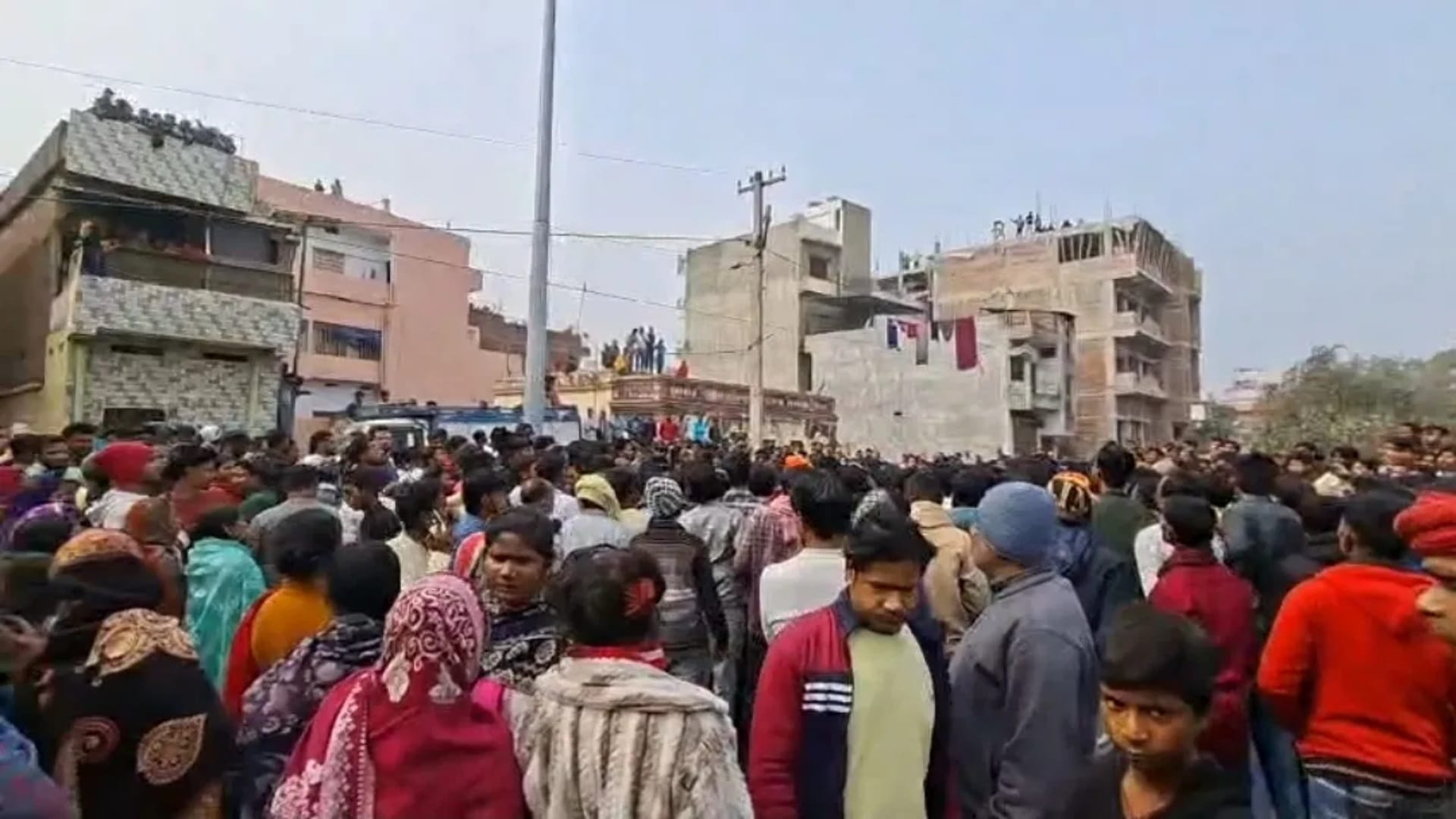 घटनास्थल पर जुटी भारी भीड़