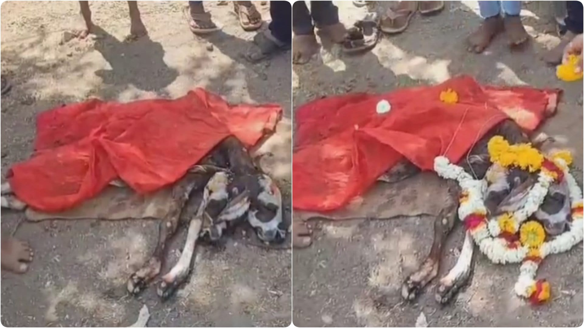 मध्य प्रदेश के बड़वानी जिले के सेंधवा नगर में रविवार सुबह एक अजीब नजारा देखने को मिला। यहां एक गौ पालक के यहां गर्भवती गाय ने विचित्र बछड़े को जन्म दिया। इस नवजात बछड़े के दो मुंह थे, चार कान और चार आंखें भी थीं। हालांकि जन्म के कुछ समय बाद ही इस विचित्र बछड़े की मृत्यु हो गई। लेकिन नगर वासियों को जैसे ही इसकी खबर मिली तो इसे देखने गौ पालक के घर वे भीड़ लगाकर जुट गए। वहीं, गौ पालक ने भी इस बछड़े का अंतिम संस्कार बड़े ही श्रद्धा भाव से करने की बात कही।