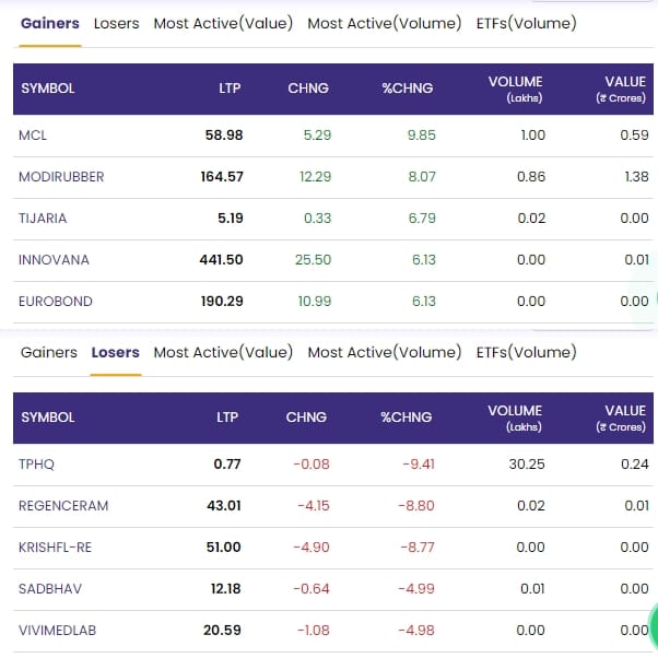 सेंसेक्स की 30 कंपनियों में से बजाज फाइनेंस, सन फार्मा, इटरनल, टाटा स्टील, टाटा कंसल्टेंसी सर्विसेज और भारती एयरटेल सबसे पिछड़ने वाली कंपनियों में शामिल थीं। भारत इलेक्ट्रॉनिक्स, टाइटन, इंफोसिस और अल्ट्राटेक सीमेंट लाभ कमाने वाली कंपनियों में शामिल थीं।