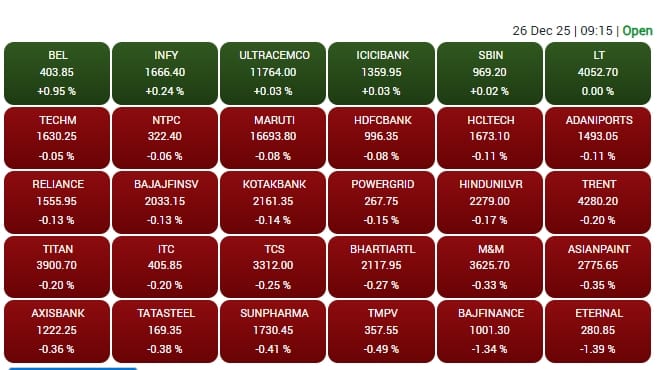 भारतीय शेयर बाजार शुक्रवार को गिरावट के साथ खुला। वहीं पिछले दिन गुरुवार को क्रिसमस के अवसर पर बाजार बंद रहा।