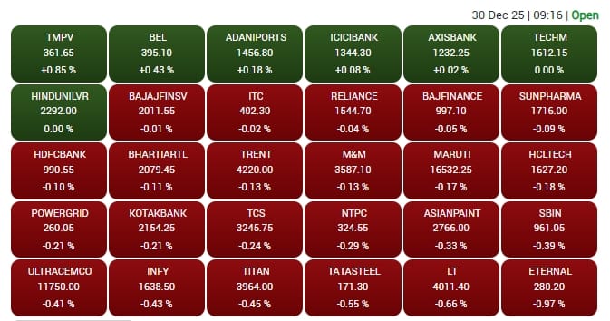 शेयर बाजार लाइव: 30 दिसंबर 2025 को सेंसेक्स और निफ्टी में नरमी दिखी। जानें FII निकासी, RBI की NBFC रिपोर्ट और आज के टॉप गेनर्स-लूजर्स की पूरी जानकारी।