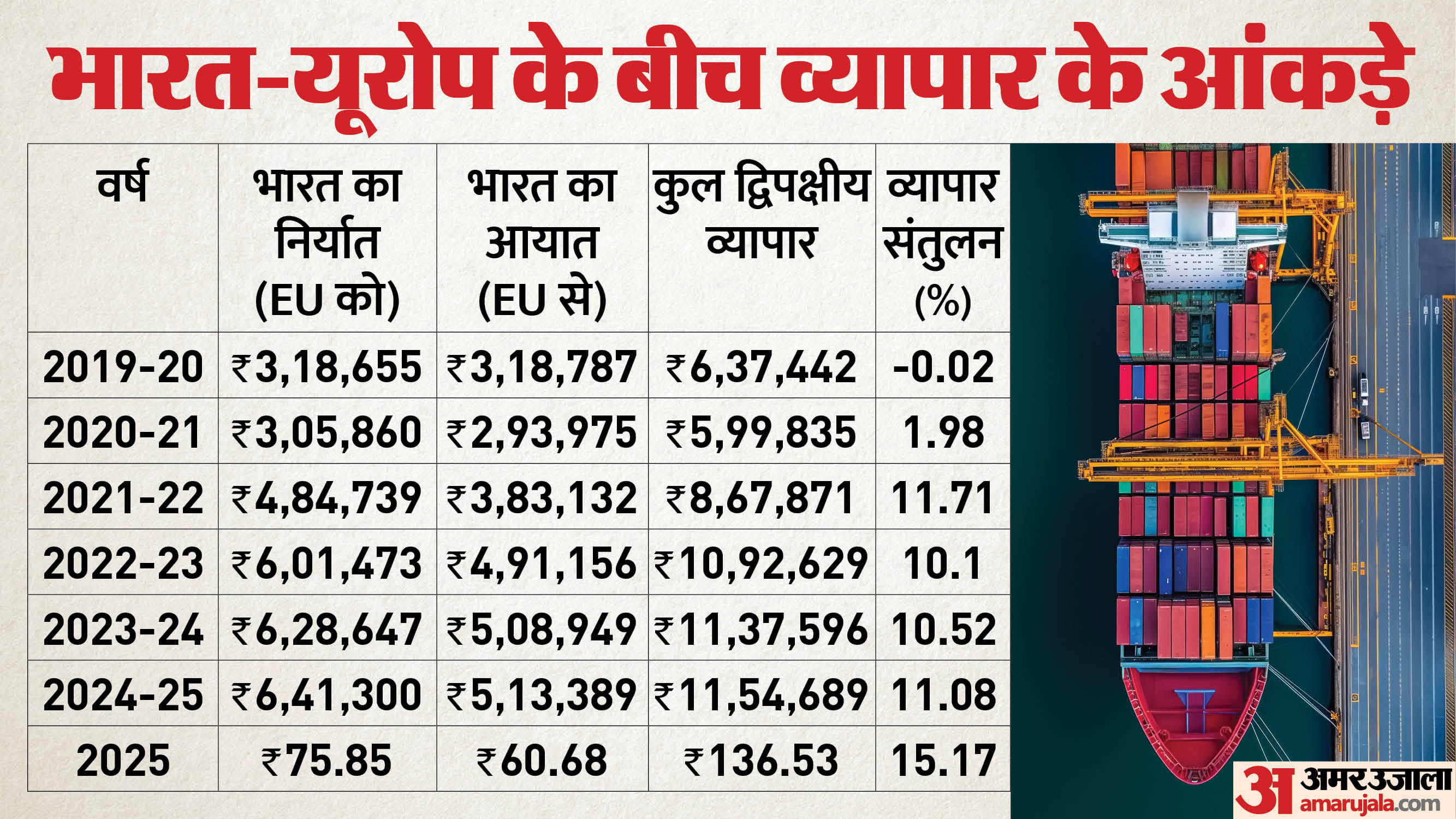 इस पूरे घटनाक्रम के बीच यह जानना अहम है कि भारत और यूरोप के बीच साझेदारी के मौजूदा आंकड़े क्या हैं? यूरोपीय देशों के संगठन- ईयू और भारत के बीच एक मुक्त व्यापार समझौते (एफटीए) पर कब से चर्चा चल रही थी? दोनों पक्षों के बीच यह समझौता कितना बड़ा होगा? इससे भारत और यूरोपीय संघ को क्या फायदा होगा? भारत के कौन से सेक्टर इस ट्रेड डील से लाभान्वित होंगे? आगे क्या चुनौतियां हो सकती हैं? आइये जानते हैं...