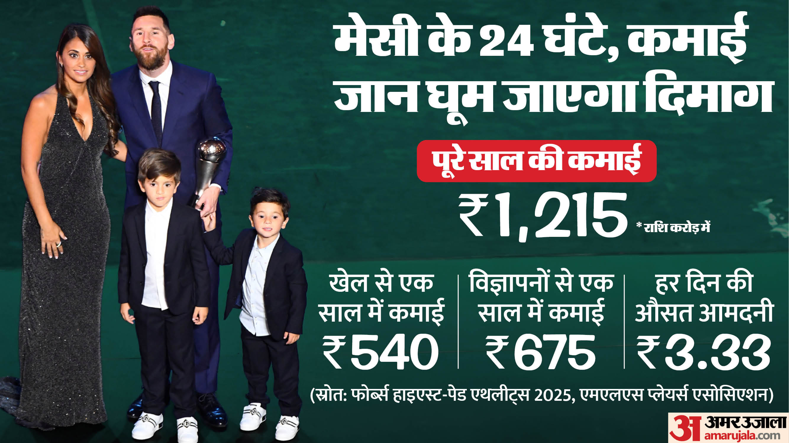 इसका सीधा मतलब है कि मेसी जब सो रहे होते हैं, तब भी उनकी कमाई का मीटर चालू रहता है और वे हर 24 घंटे में सवा तीन करोड़ रुपये से अधिक की कमाई कर लेते हैं। इसमें मैदान से होने वाली यानी फुटबॉल खेलकर होने वाली आमदनी लगभग ₹1.48 करोड़ प्रतिदिन है। जबकि मैदान के बाहर यानी विज्ञापन या अन्य स्रोतों से होने वाली आमदनी लगभग ₹1.85 करोड़ प्रतिदिन है।