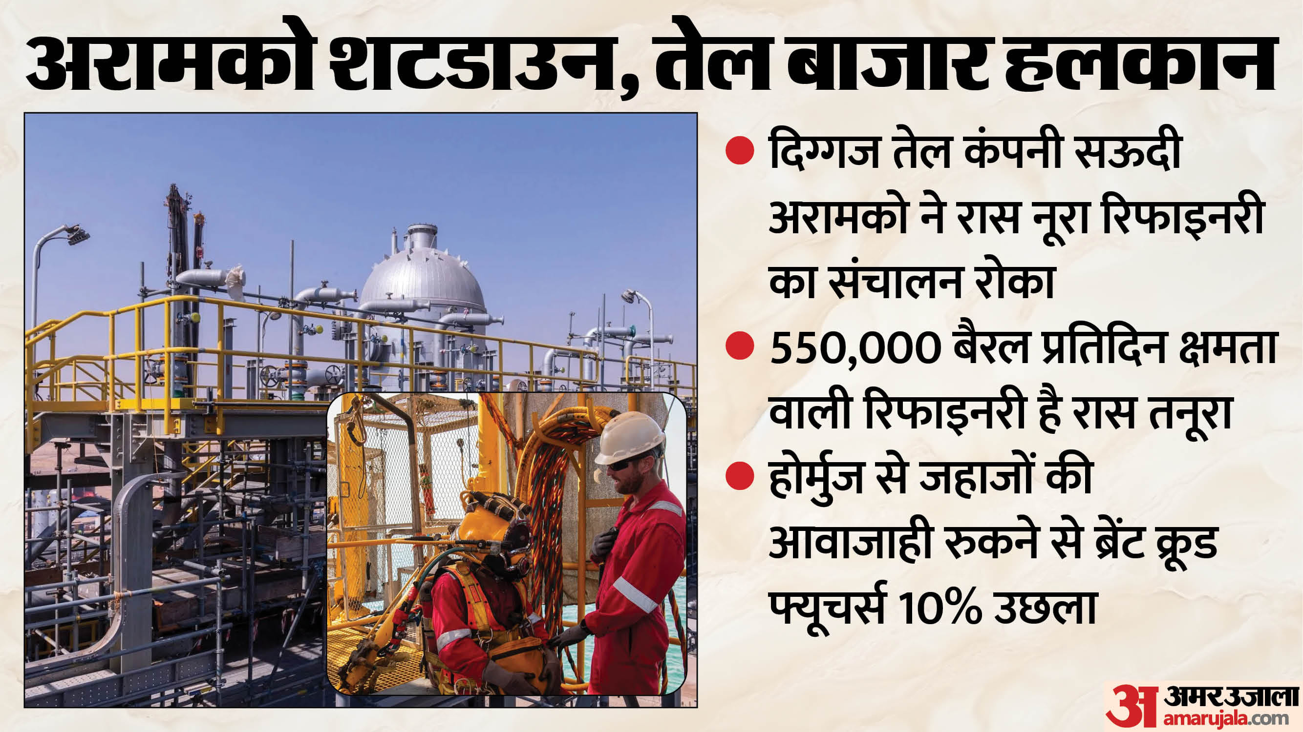 मिडिल ईस्ट का सबसे सुरक्षित माना जाने वाला एनर्जी इंफ्रास्ट्रक्चर अब सीधे निशाने पर है। ड्रोन हमले के बाद सऊदी अरब ने अपनी सबसे बड़ी घरेलू तेल रिफाइनरी 'रास तनूरा' को एहतियातन बंद कर दिया है। 5,50,000 बैरल प्रतिदिन की क्षमता वाली यह रिफाइनरी सऊदी क्रूड ऑयल के लिए एक अहम एक्सपोर्ट टर्मिनल भी है। हालांकि, सऊदी रक्षा मंत्रालय के अनुसार दो ड्रोन हवा में ही नष्ट कर दिए गए और मलबे से लगी मामूली आग पर काबू पा लिया गया है। सऊदी अधिकारियों का कहना है कि स्थिति नियंत्रण में है और स्थानीय बाजारों में तेल की आपूर्ति प्रभावित नहीं हुई है।