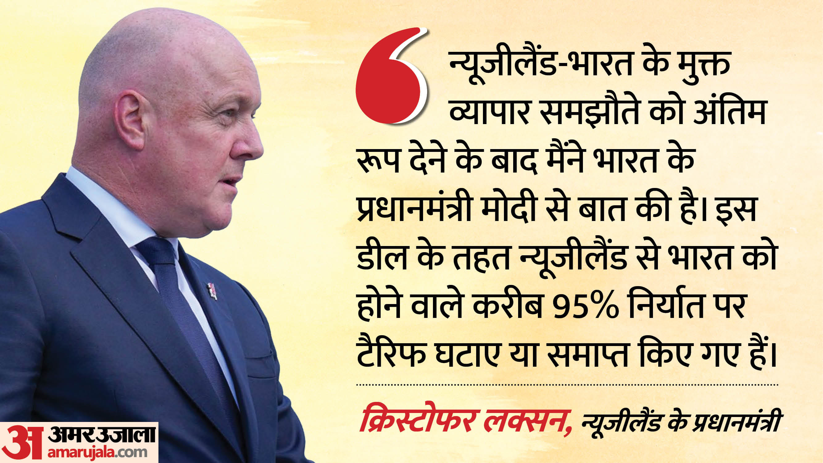 न्यूजीलैंड के प्रधानमंत्री ने बताया कि भारत-न्यूजीलैंड FTA के बाद उन्होंने प्रधानमंत्री मोदी से बातचीत की। समझौते के तहत भारत को होने वाले न्यूजीलैंड के करीब 95% निर्यात पर टैरिफ घटाए या खत्म किए गए हैं।