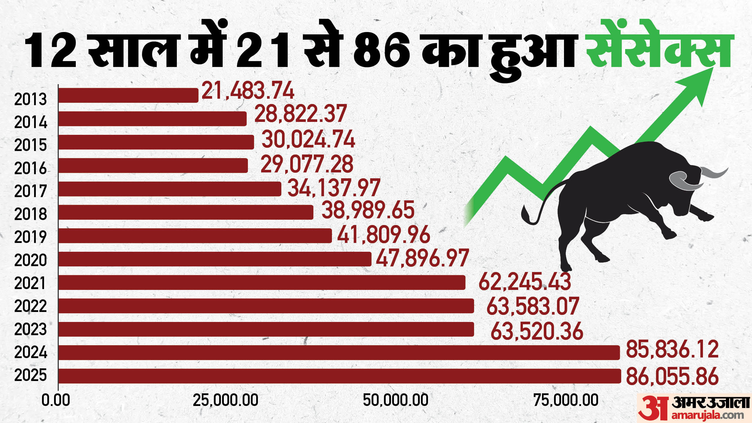 भारतीय शेयर बाजार गुरुवार को कुछ ऐसा हुआ जिसने दलाल स्ट्रीट को रोमांचित कर दिया। सेंसेक्स पहली बार 86,000 के पार पहुंच गया, जबकि निफ्टी50 ने भी सितंबर 2024 के पुराने रिकॉर्ड को तोड़ते हुए नई ऊंचाई छू ली। अमेरिकी फेडरल रिजर्व की संभावित दर कटौती और विदेशी निवेशकों की बढ़ती दिलचस्पी ने बाजार को नई ऊंचाइयों पर पहुंचा दिया। लगातार दूसरे दिन बढ़त के साथ, 30 शेयरों वाला बीएसई सेंसेक्स 110.87 अंक या 0.13 प्रतिशत चढ़कर 85,720.38 पर बंद हुआ। कारोबार के दौरान, यह 446.35 अंक या 0.52 प्रतिशत की उछाल के साथ 86,055.86 के रिकॉर्ड उच्च स्तर पर पहुंच गया। बेंचमार्क का इससे पहले का सर्वकालिक उच्च स्तर 27 सितंबर, 2024 को 85,978.25 था।