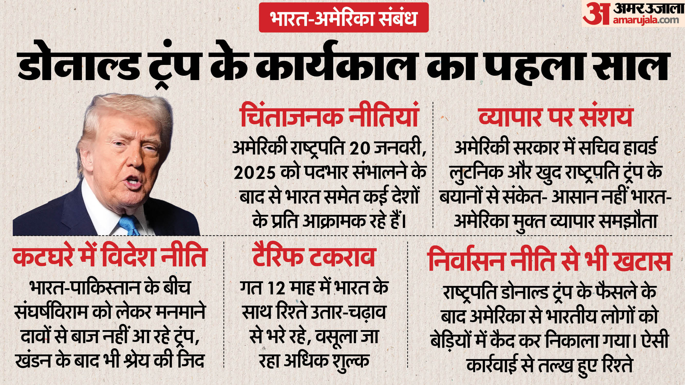 दावोस में अमेरिकी राष्ट्रपति ट्रंप ने भारत के साथ ‘अच्छे’ ट्रेड डील का भरोसा जताते हुए पीएम मोदी की तारीफ की। हालांकि, भारतीय निर्यात पर 50% टैरिफ और रूसी तेल को लेकर मतभेदों के चलते समझौते को लेकर अनिश्चितता अब भी बनी हुई है। भारत को लेकर ट्रंप के बयान अक्सर बदलते रहते हैं आइए विस्तार से जानते हैं।
