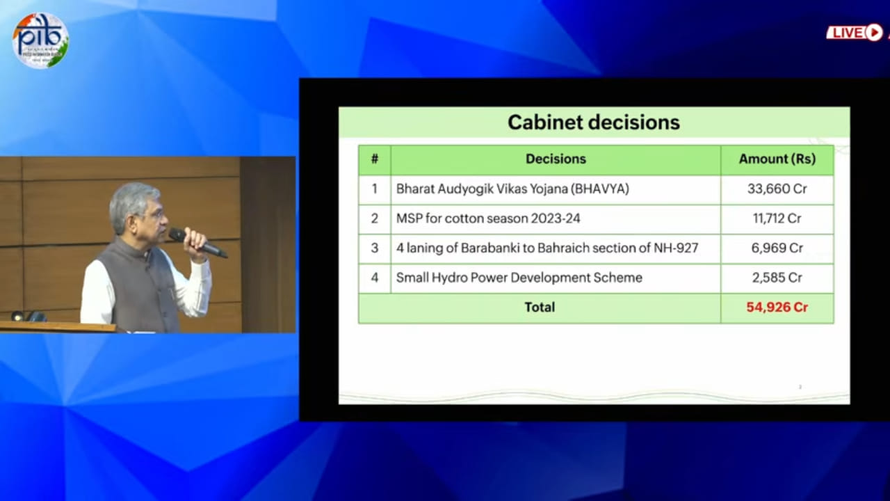 Cabinet: उद्योग, कृषि और इंफ्रास्ट्रक्चर के लिए ₹54,926 करोड़ की योजनाओं को मंजूरी, जानिए एमएसपी पर क्या फैसला