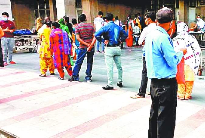 इमरजेंसी में मरीजों की कतार, सामाजिक दूरी का ख्याल नहीं
