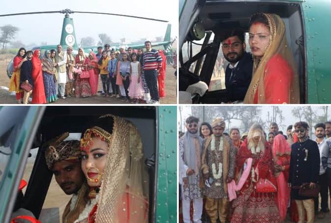 बेटी को पिता ने हेलीकॉप्टर में किया विदा।