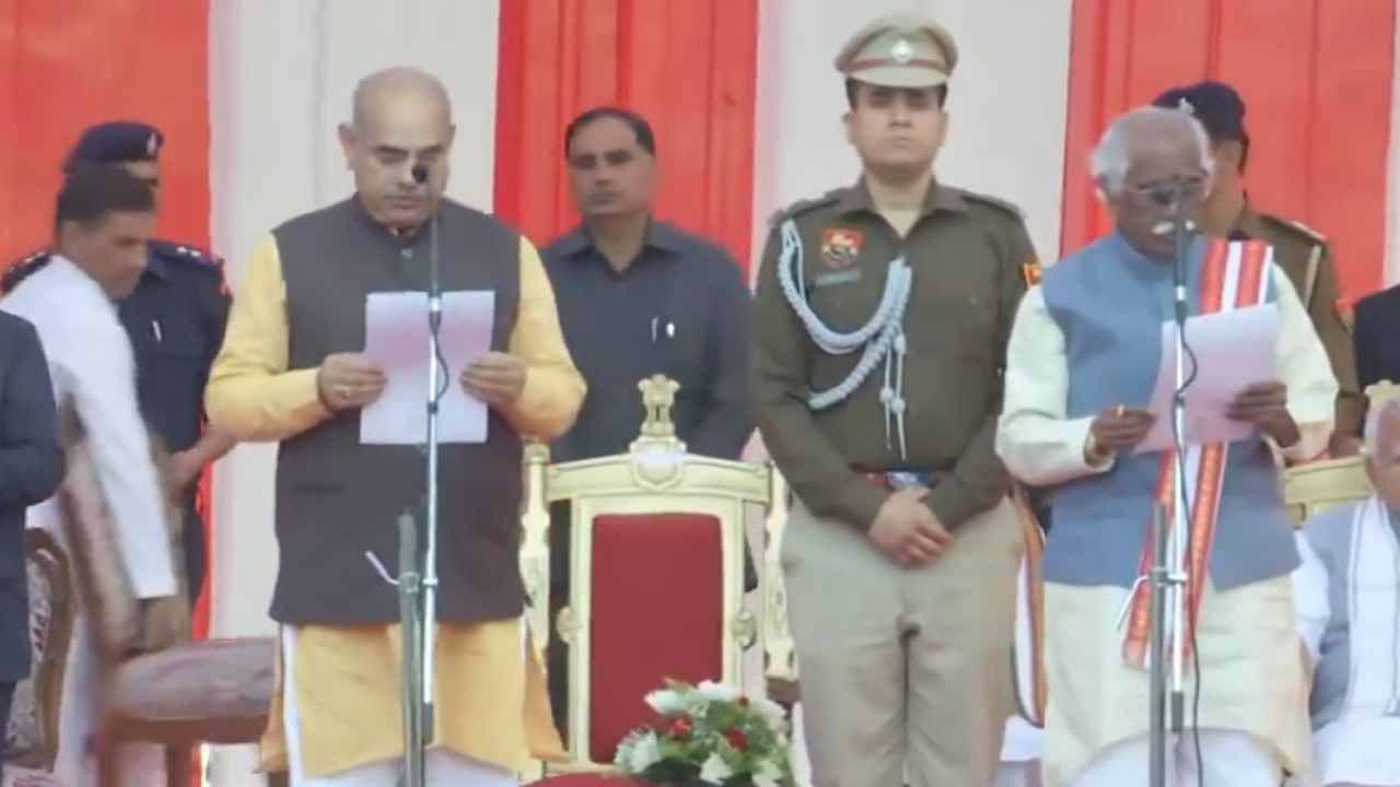 नायब सिंह सैनी के रूप में हरियाणा को अपना नया मुख्यमंत्री मिल गया है। मंगलवार शाम को हरियाणा के राज्यपाल बंडारू दत्तात्रेय ने उन्हें पद एवं गोपनीयता की शपथ दिलाई। इस दौरान हरियाणा के पूर्व सीएम मनोहर लाल भी मौजूद रहे। उन्होंने पीठ थपथपा कर सैनी को आशीर्वाद दिया। इसके साथ ही पांच विधायकों को मंत्री पद की शपथ दिलाई गई। मंत्रिमंडल में कोई नया चेहरा नहीं शामिल किया गया है।