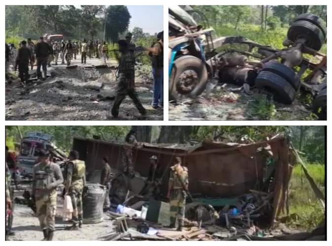 राज्य के वरिष्ठ पुलिस अधिकारियों ने बताया कि बीजापुर जिला मुख्यालय से लगभग सात किलोमीटर दूर भोपालपटनम की तरफ बीजापुर घाटी में आज नक्सलियों ने बारूदी सुरंग में विस्फोट कर दिया। इस घटना में सीमा सुरक्षा बल के 414 बटालियन के चार जवान, एक डीआरजी का जवान और एक नागरिक घायल हो गए हैं।