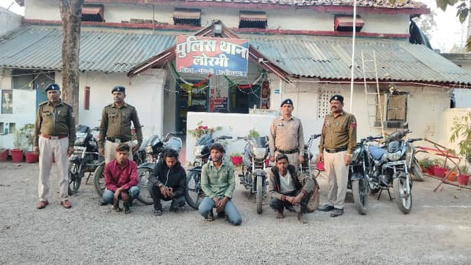 मुंगेली पुलिस ने वाहन चोरी करने वाले एक सक्रिय गिरोह का पर्दाफाश करते हुए बड़ी सफलता हासिल की है। पुलिस ने इस कार्रवाई में एक ट्रैक्टर और सात चोरी की बाइकें बरामद करते हुए चार आरोपियों को गिरफ्तार किया है और एक अन्य बाल अपचारी को भी पकड़ा है। जब्त वाहनों की कुल कीमत लगभग 4 लाख रुपये आंकी गई है।