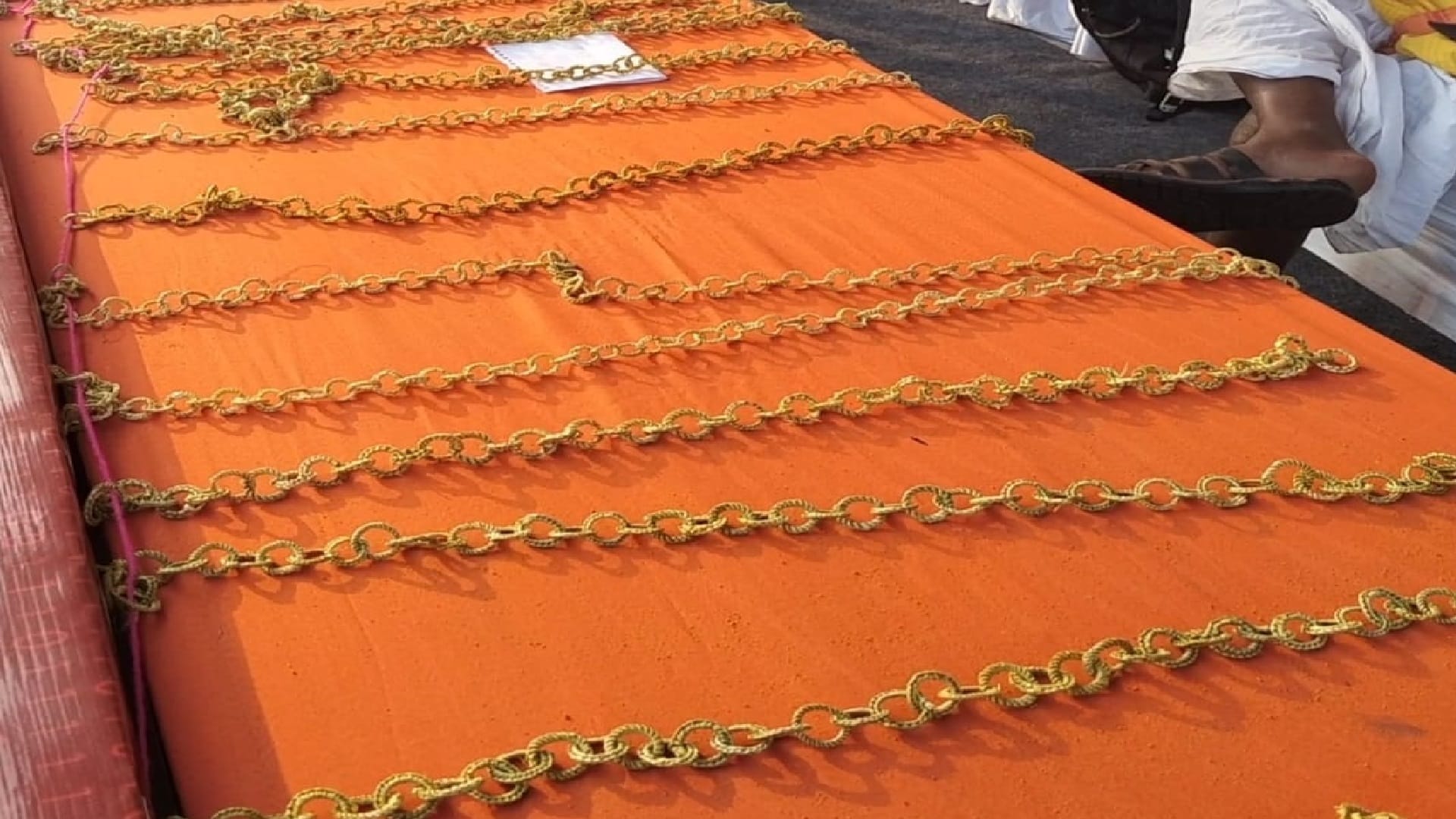 24 से 26 फरवरी 2023 में रायपुर में हुए कांग्रेस के 85वें महाधिवेशन में तत्कालीन मुख्यमंत्री भूपेश बघेल ने रायपुर पहुंचे कांग्रेस के वरिष्ठ नेताओं को ये माला पहनाकर सम्मानित किया था। उस दौरान 'सोने की माला' पहनाने को लेकर सोशल मीडिया पर खूब ट्रोल हुए थे। असली सोने की माला को लेकर सोशल मीडिया पर जमकर वीडियो वायरल हुआ था। कई सोशल मीडिया यूजर्स आरोप लगाये थे कि बघेल ने कांग्रेस नेताओं का स्वागत सोने की माला पहनाकर किया। वहीं बीजेपी ने सोने की माला कहकर राजनीतिक मुद्दा बनाया था। इस वीडियो में भूपेश बघेल कांग्रेस नेताओं को पीले रंग की माला पहनाकर उनका अभिवादन करते दिखे थे।