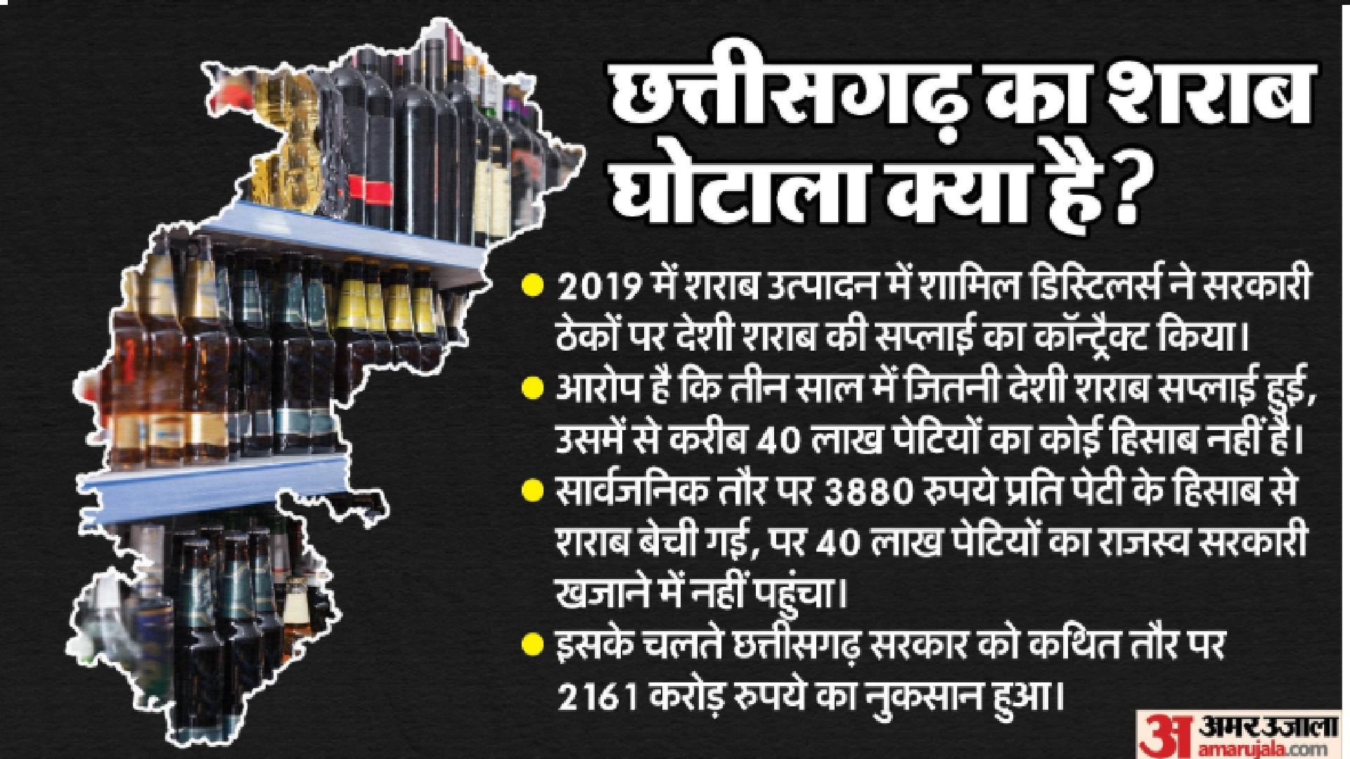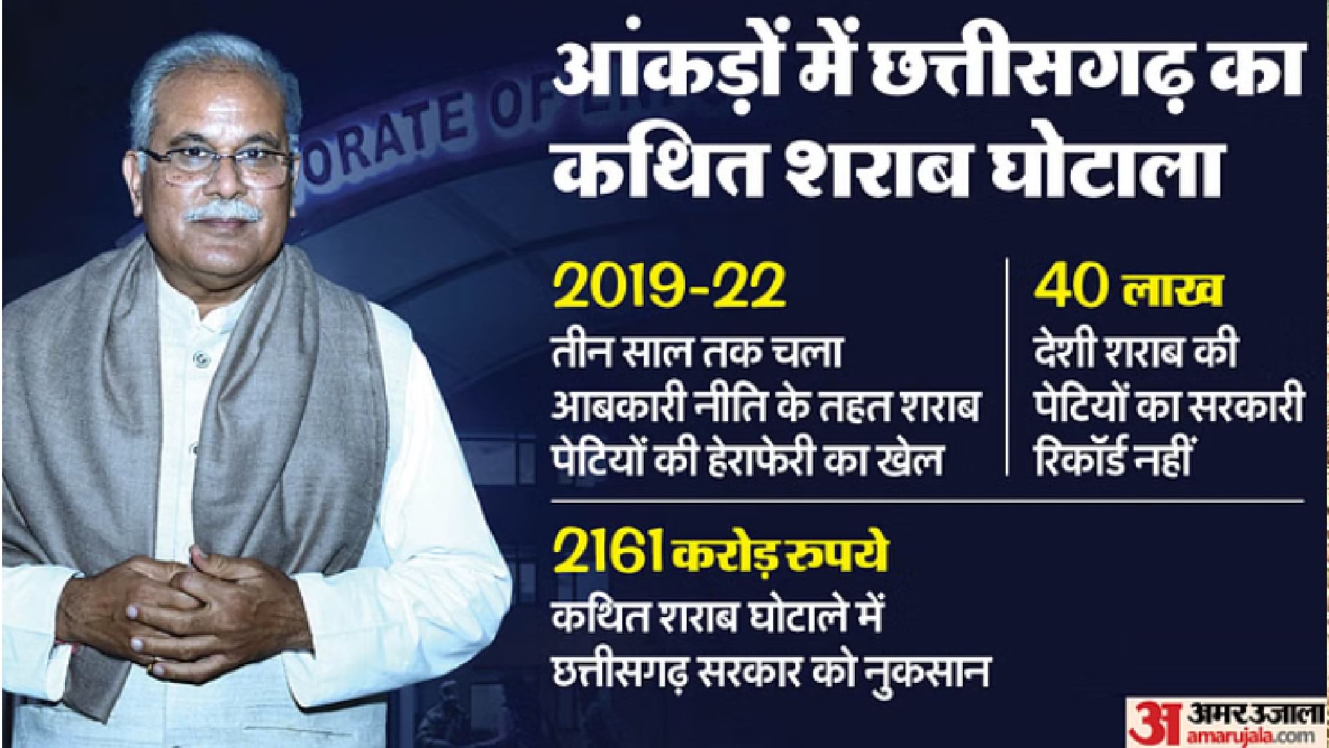 पूर्व की कांग्रेस सरकार पर आरोप है कि सीएसएमसीएल (शराब की खरीद और बिक्री के लिए राज्य निकाय) से शराब खरीदने के दौरान रिश्वतखोरी हुई। प्रति शराब मामले के आधार पर राज्य में डिस्टिलर्स से रिश्वत ली गई और देशी शराब को ऑफ-द-बुक बेचा गया। ईडी के मुताबिक, डिस्टिलर्स से कार्टेल बनाने और बाजार में एक निश्चित हिस्सेदारी की अनुमति देने के लिए रिश्वत ली गई थी।