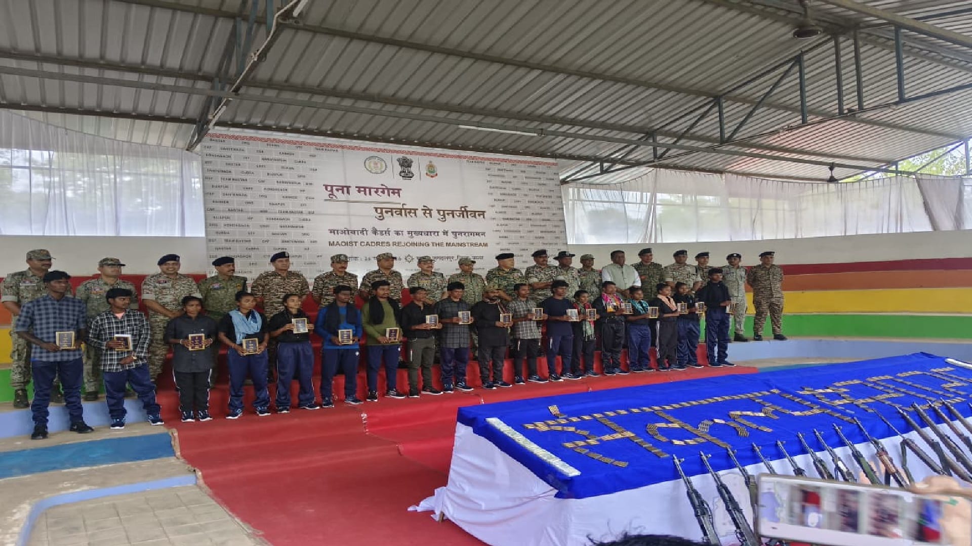 पुलिस को सरेंडर करने के साथ ही भारी मात्रा में हथियार भी सुपूर्द किया गया। इनमें 8 एके-47, एक इंसास राइफल, चार थ्री-नॉट-थ्री, एक एसएलआर, दो सिंगल शॉट और बीजीएल लॉन्चर के साथ ही 12 लाख रुपए नगद भी पुलिस के हवाले किया गया।