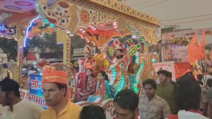 हर साल की भांति इस साल भी राम नवमी शोभायात्रा में हजारों की संख्या में राम भक्त युवक, युवतियां महिला, बुजुर्ग, बच्चे अपने हाथों में भगवा ध्वज धारण किये भगवान श्रीराम के जयकारे लगाते आगे बढ़ रहे है। इस दौरान शहर को शहरवासी जगह-जगह पर झांकियों व शोभायात्रा का आत्मीय स्वागत करते रहे।