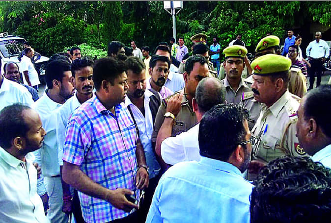 सोमवार को एआरटीओ प्रशासन सुधेश तिवारी सरकारी कार्य से कचहरी गए थे। उसी दौरान 50 से अधिक लोग आ गए और उनकी गाड़ी घेर कर गालीगलौज करने लगे। जैसे ही वह गाड़ी से उतरे उनके साथ हाथापाई कर दी। सीओ सिटी ने बीचबचाव किया तो उनसे भी झगड़ा करने लगे।