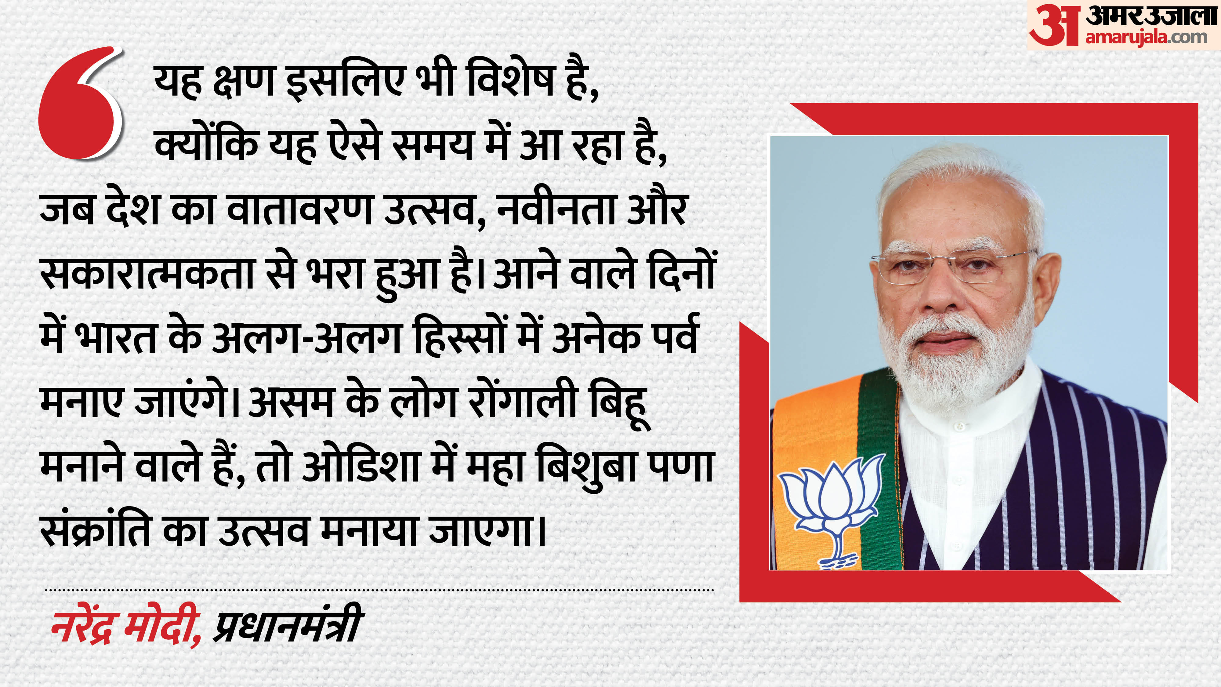 यह क्षण इसलिए भी विशेष है, क्योंकि यह ऐसे समय में आ रहा है, जब देश का वातावरण उत्सव, नवीनता और सकारात्मकता से भरा हुआ है। आने वाले दिनों में भारत के अलग-अलग हिस्सों में अनेक पर्व मनाए जाएंगे। असम के लोग रोंगाली बिहू मनाने वाले हैं, तो ओडिशा में महा बिशुबा पणा संक्रांति का उत्सव मनाया जाएगा। पश्चिम बंगाल में पोइला बैशाख के साथ बंगाली नववर्ष की शुरुआत होगी। केरलम में विषु पूरे उत्साह के साथ मनाया जाएगा। तमिलनाडु के लोग उत्सुकता से पुथांडु की प्रतीक्षा कर रहे हैं, तो पंजाब और उत्तर भारत के अन्य हिस्सों में लोगों को बैसाखी के पर्व का इंतजार है। ये पावन पर्व हर किसी में एक नई आशा का संचार करने वाले हैं। भारत के साथ-साथ दुनिया भर में इन त्योहारों को मनाने वाले सभी लोगों को मैं हृदय से शुभकामनाएं देता हूं। मैं यह कामना करता हूं कि ये पावन अवसर सभी के जीवन में सुख-समृद्धि लेकर आएं।