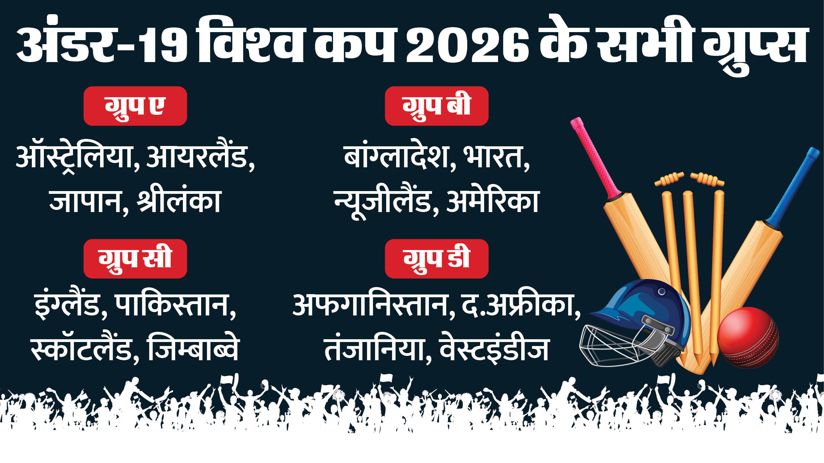 U19 World Cup 2026 Schedule Time Table : आईसीसी अंडर-19 क्रिकेट विश्व कप 2026 का आयोजन 15 जनवरी से छह फरवरी तक जिम्बाब्वे और नामीबिया में होगा। कुल 16 टीमें भाग लेंगी। ग्रुप स्टेज, सुपर सिक्स, सेमीफाइनल और फाइनल के फॉर्मेट में मुकाबले खेले जाएंगे। ऑस्ट्रेलिया डिफेंडिंग चैंपियन है, भारत ने सबसे ज्यादा पांच खिताब जीते हैं। टूर्नामेंट में पांच मैदानों पर मैच होंगे। लगभग सभी देशों ने अपनी टीमों की घोषणा कर दी है और टिकट बिक्री भी शुरू हो चुकी है।