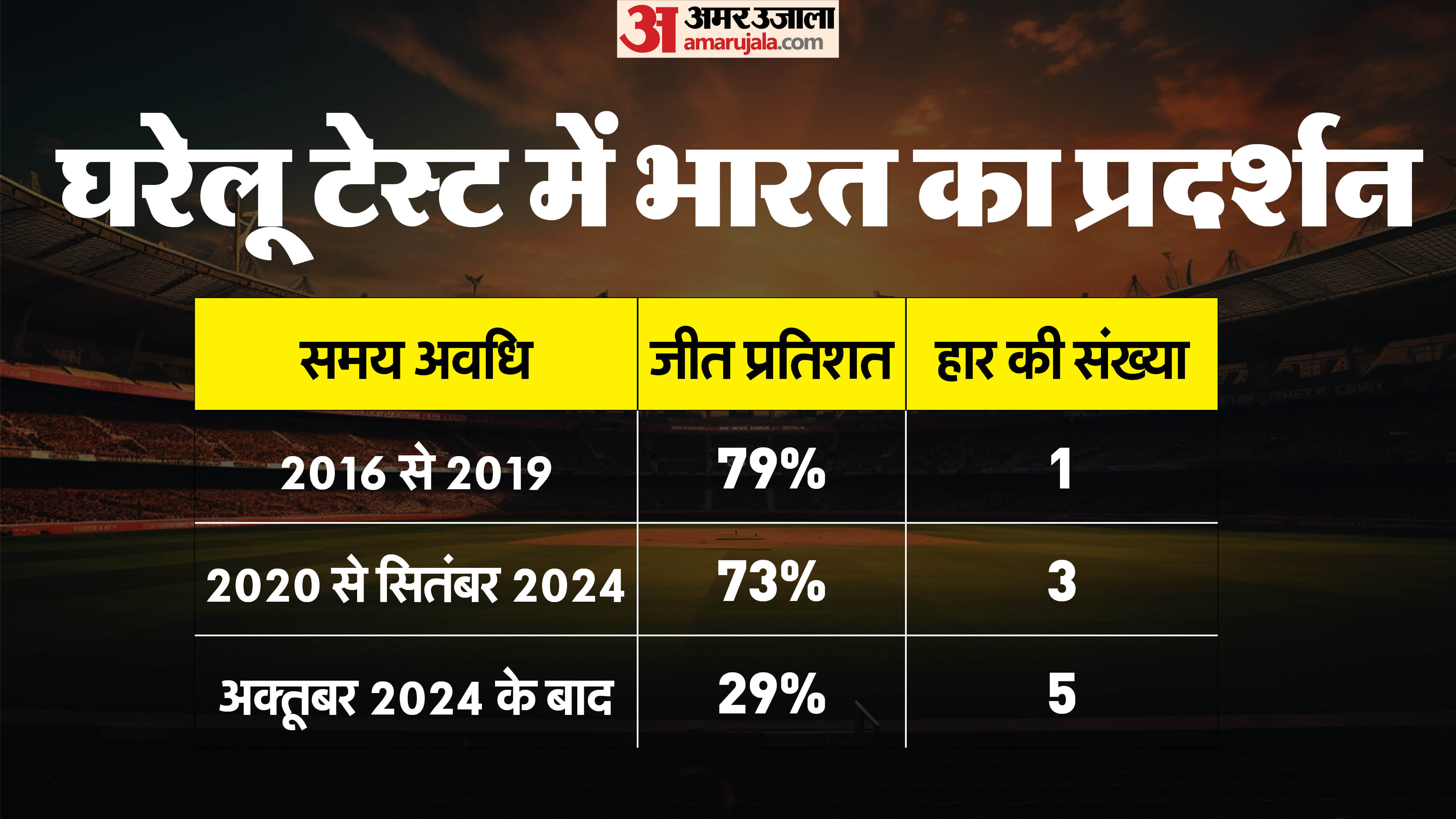 भारत ने 1932 से लेकर 2000 तक कुल 179 घरेलू टेस्ट खेले। इसमें भारत ने 49 जीते, 42 हारे, एक टाई रहा और 87 मुकाबले ड्रॉ रहे थे। हार का अनुपात 23.46 प्रतिशत था। यानी वह दौर जब भारत टेस्ट क्रिकेट में सीखने की यात्रा पर था, तब भी टीम का प्रदर्शन वर्तमान 13 महीनों से बेहतर था।