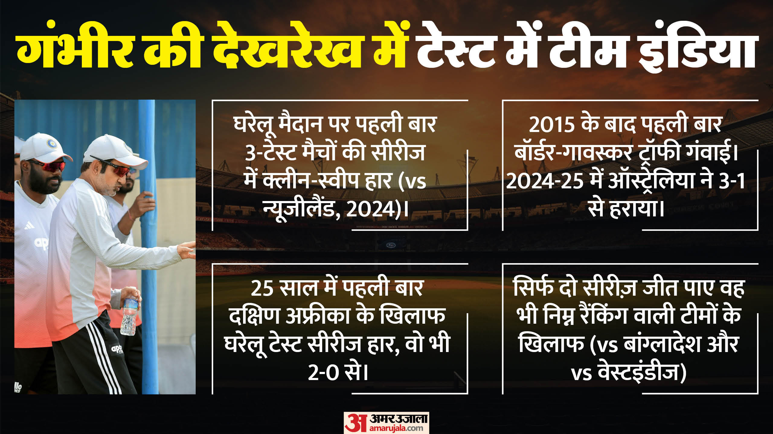भारतीय टीम की यह गिरावट उस दौर में आई है जब टीम की देखरेख कोच गौतम गंभीर के हाथों में है। सफेद गेंद क्रिकेट में उनकी सफलता सब जानते हैं, लेकिन रेड-बॉल क्रिकेट में उनकी योजनाएं सवालों के घेरे में हैं। भारत की टेस्ट टीम, जिसे कभी घरेलू क्रिकेट की 'अजेय दीवार' कहा जाता था, अब लगातार हार का सामना कर रही है। न्यूजीलैंड के खिलाफ 0-3 की हार के बाद दक्षिण अफ्रीका के हाथों 0-2 की सीरीज हार ने भारतीय क्रिकेट में हलचल मचा दी है।