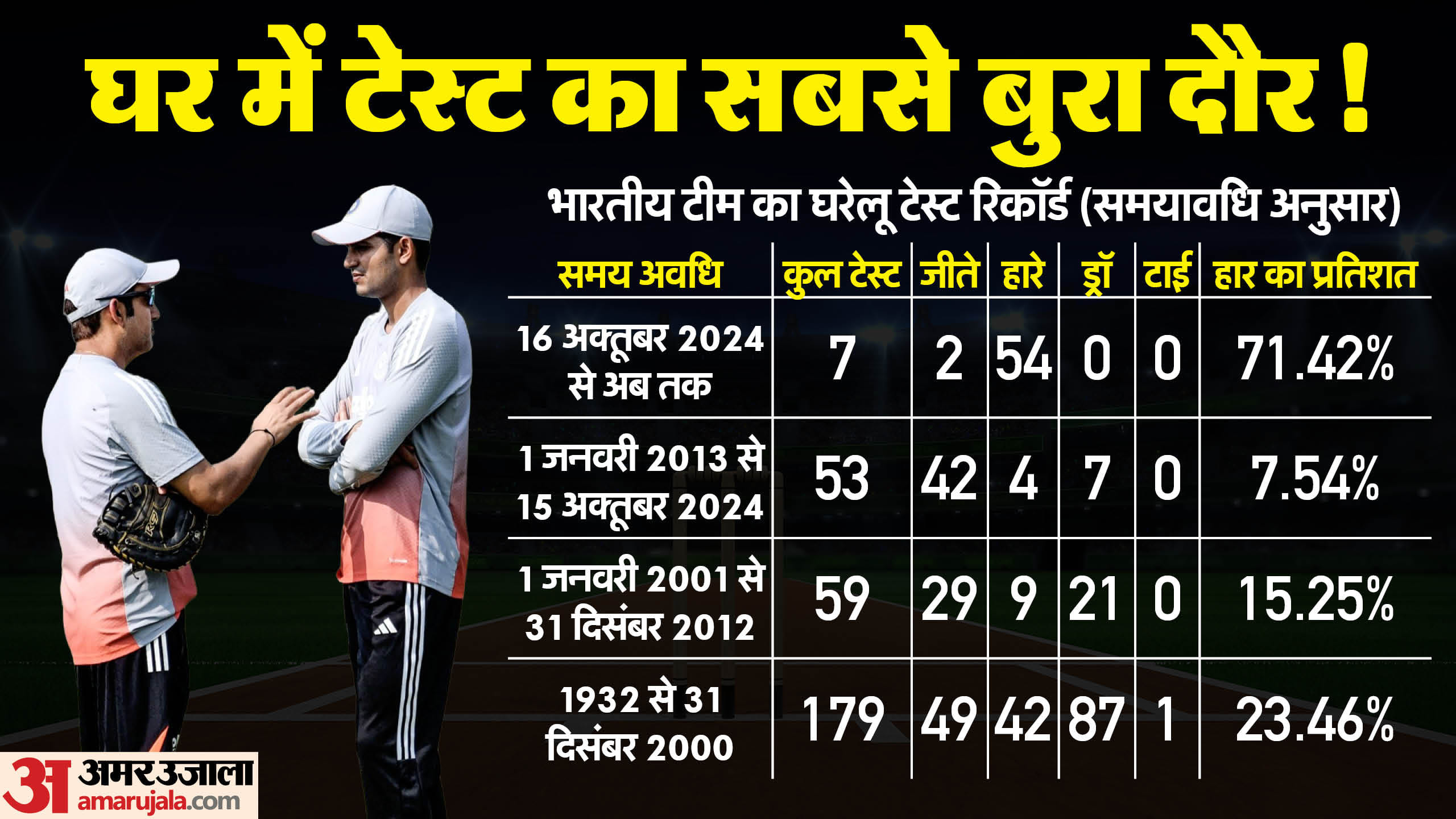 16 अक्तूबर, 2024 से अब तक भारत ने घर पर सात टेस्ट खेले और इनमें से पांच हारे हैं। कोच गौतम गंभीर की देखरेख में घर पर ही टीम के प्रदर्शन में गिरावट आई है। पिछले 13 महीने में हम घर पर जितने टेस्ट हारे हैं, उससे पहले उतने टेस्ट हारने में भारत को करीब 13 साल लगे थे। 16 अक्तूबर, 2024 से अब तक घरेलू टेस्ट में हार का दर 71.42 प्रतिशत है, जो 1932 से अब तक यानी भारत के टेस्ट इतिहास में सबसे खराब है। इस अवधि में भारत को घरेलू परिस्थितियों में अक्सर अपने ही बनाए पिचों का उल्टा प्रभाव झेलना पड़ा है। स्पिनर्स के खिलाफ खराब बल्लेबाजी ने भारत की बैटिंग को कई बार ध्वस्त किया है। जबकि भारत ने खुद ही घर पर लगभग सभी टेस्ट में स्पिन पिच की मांग की थी।