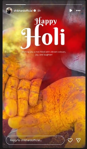 आज पूरे देश में होली का त्योहार हर्ष और उल्लास के साथ मनाया जा रहा है। भारतीय खिलाड़ियों पर भी रंगोत्सव का खुमार खूब चढ़ा है। पूर्व बल्लेबाज शिखर धवन ने पत्नी सोफी शाइन के साथ होली का त्योहार मनाया है। शादी के बाद यह दोनों की पहली होली है। उधर, मशहूर क्रिकेट कमेंटटेटर आकाश चोपड़ा ने भी अपने परिवार के साथ होली का त्योहार मनाया है। आइये तस्वीरों में देखते हैं भारतीय खिलाड़ियों की होली...