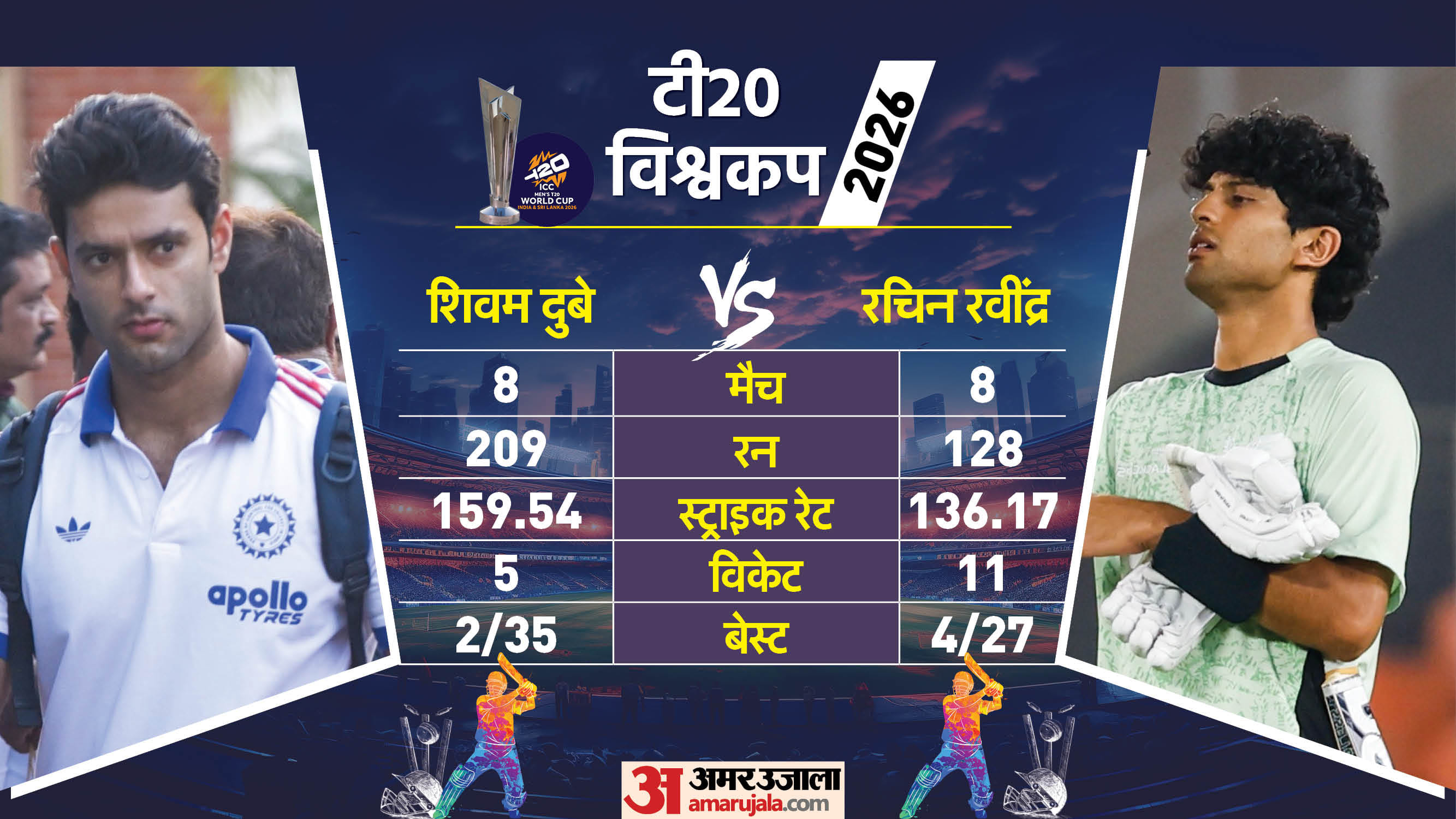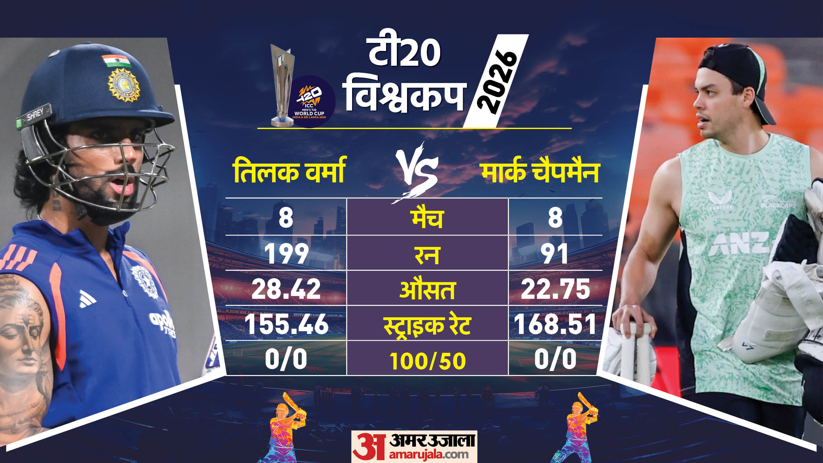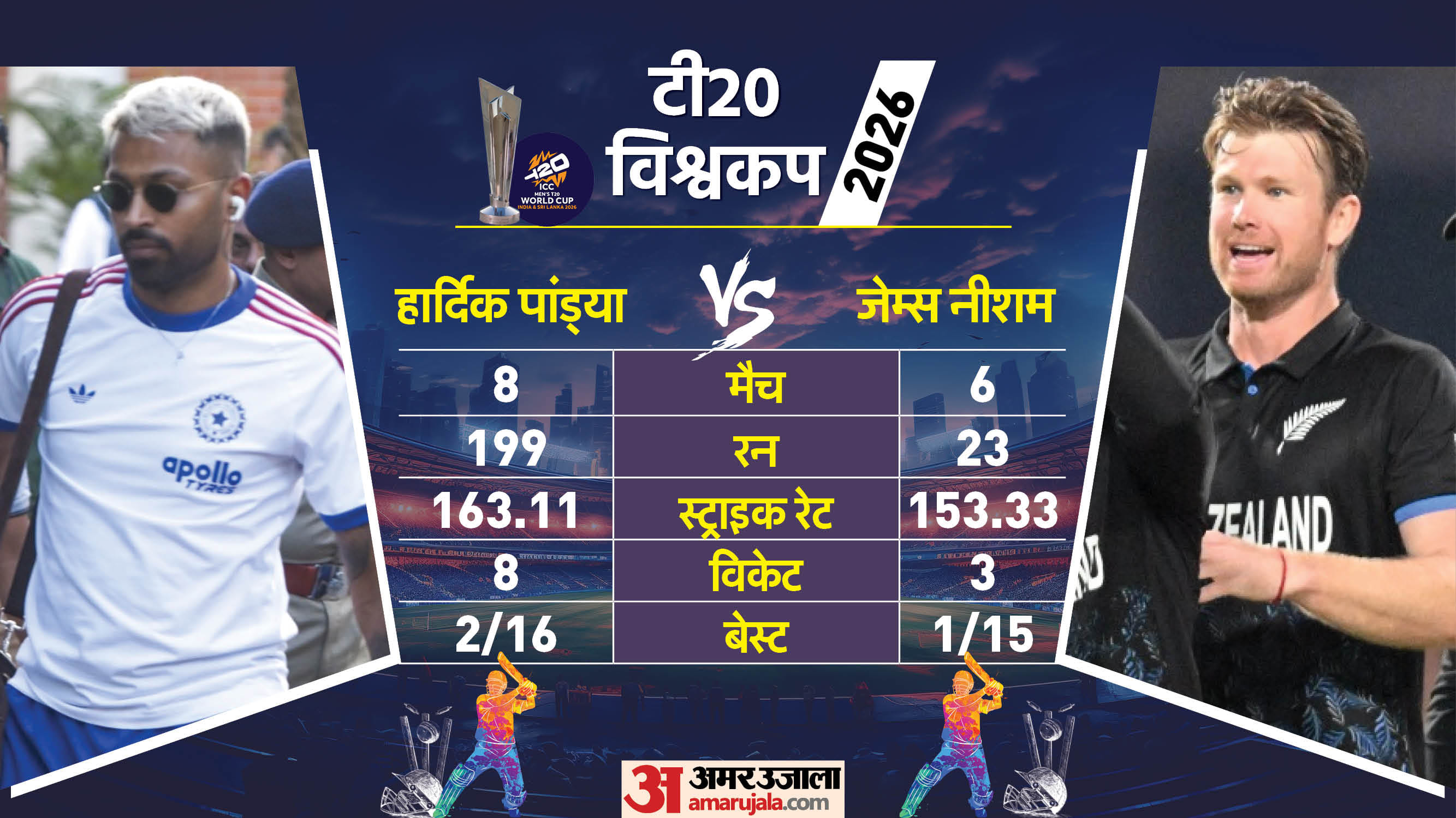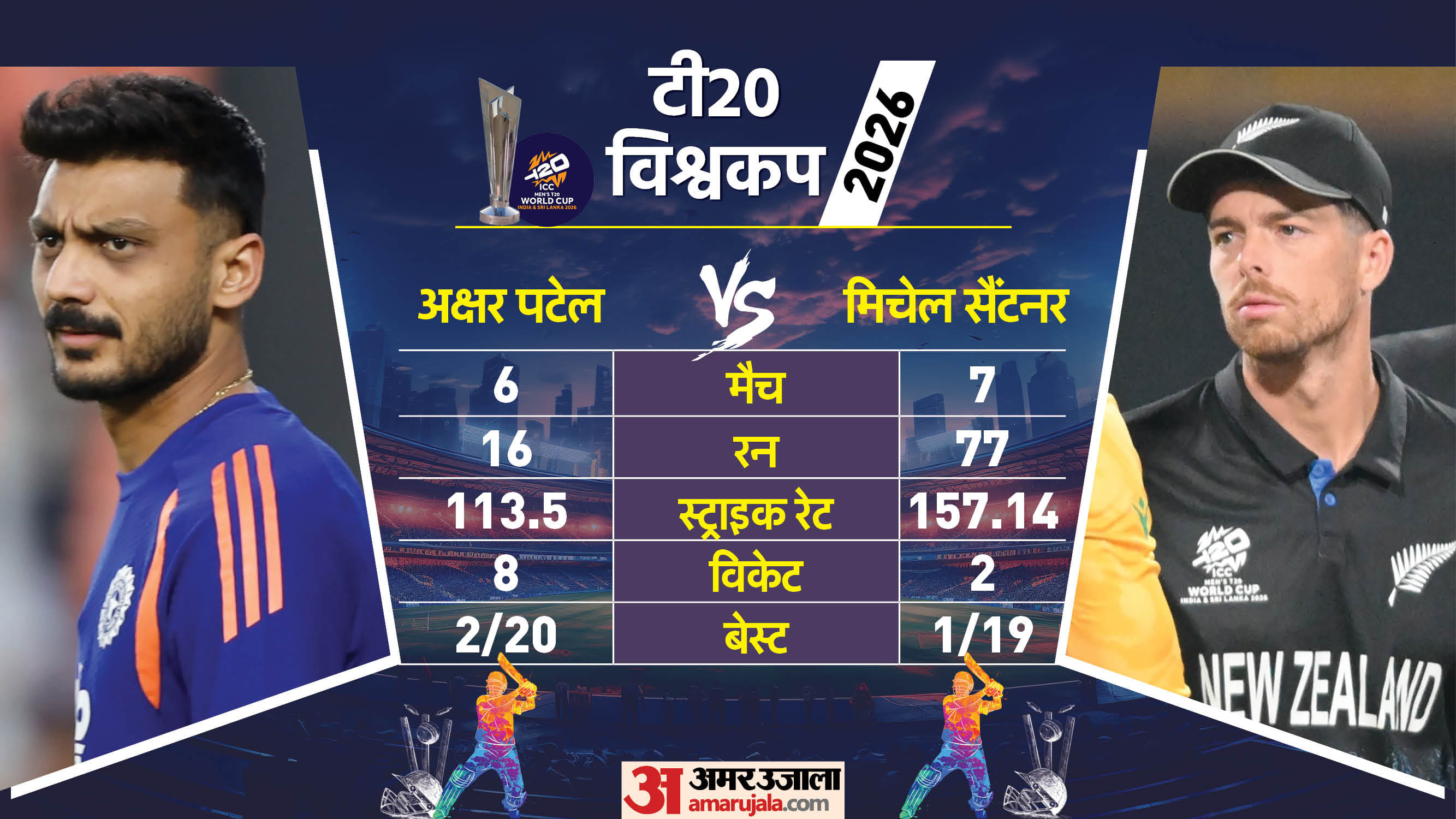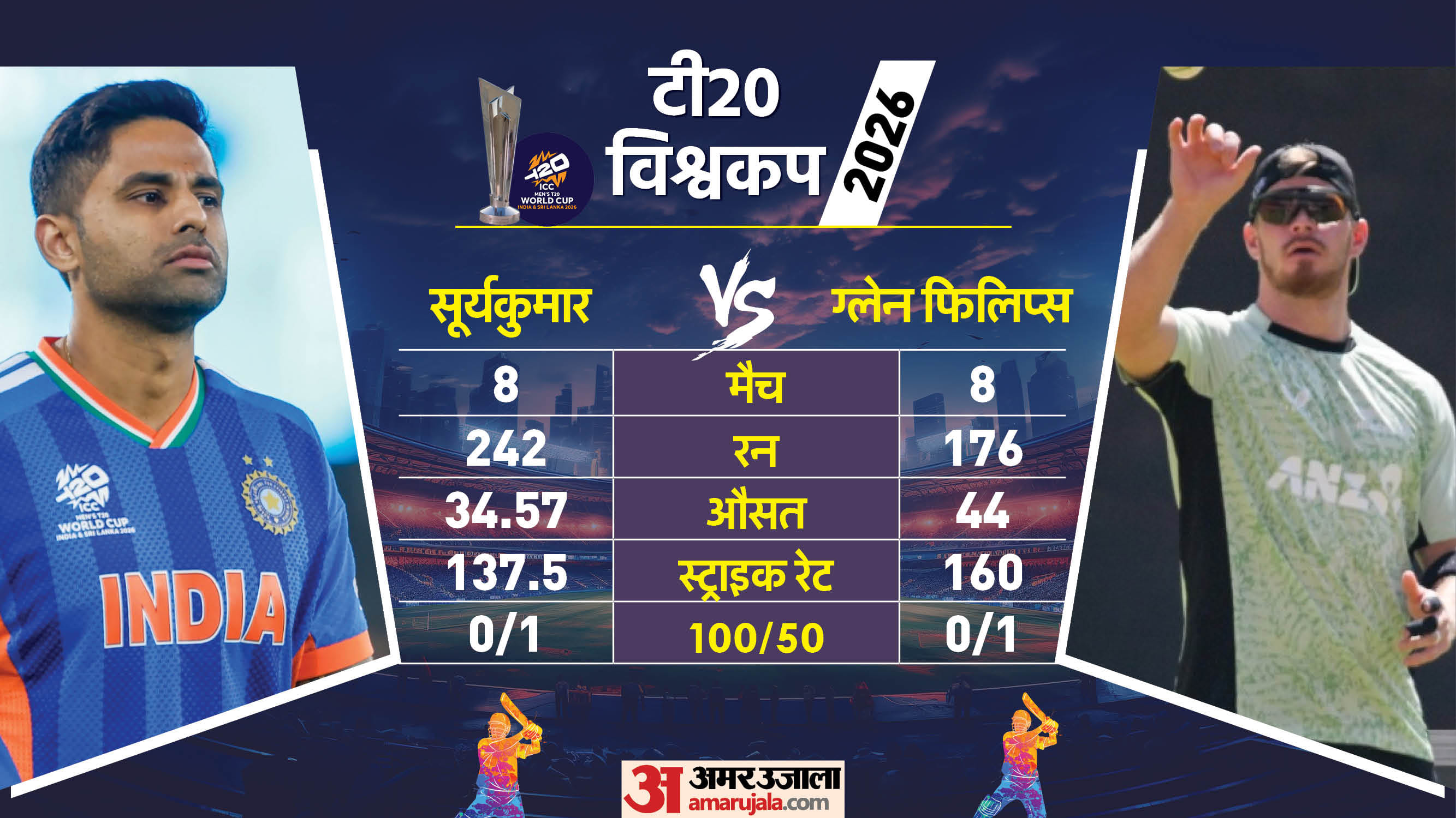 आइए ग्राफिक्स में देखते हैं कि एक से लेकर 11वें पोजिशन (संभावित) तक दोनों टीमों के खिलाड़ियों में से किसका इस टी20 विश्वकप में प्रदर्शन बेहतर रहा है....