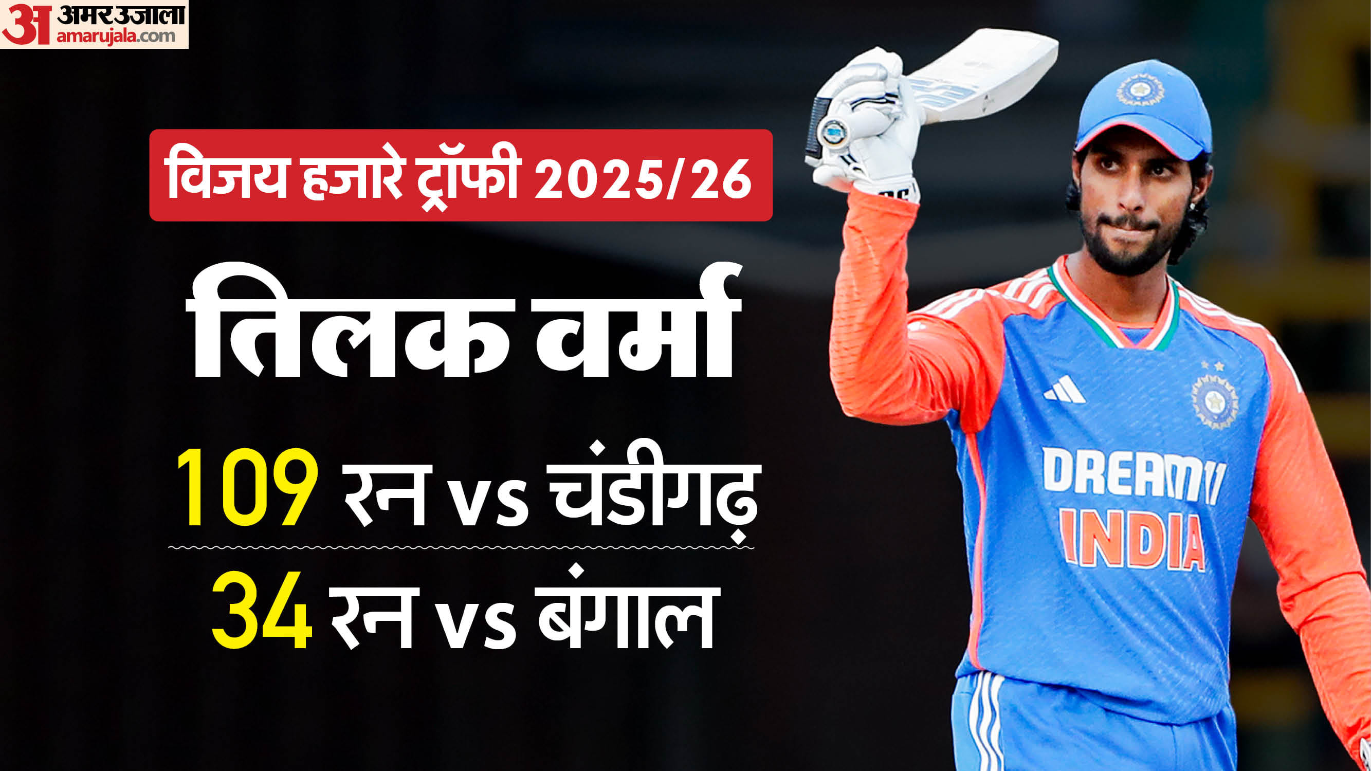 टीम इंडिया के टी20 कप्तान सूर्यकुमार यादव ने विजय हजारे में सिर्फ दो मैच खेले, लेकिन फॉर्म टेस्टिंग में वह फेल साबित हुए। हिमाचल के खिलाफ 24 और पंजाब के खिलाफ 15 रन उनकी बैटिंग का हिस्सा रहे। वहीं, तिलक वर्मा ने चंडीगढ़ के खिलाफ शानदार 109 रन जड़े और फिर बंगाल के खिलाफ 34 रन बनाकर निरंतरता दिखाई। तिलक की स्थिरता भारत के मिडिल ऑर्डर के लिए राहतभरी खबर है। हालांकि, वह चोटिल हो गए हैं और टी20 विश्व कप में उनके खेलने पर संशय है। विजय हजारे में लगी चोट की वजह से उन्हें सर्जरी से गुजरना पड़ा है।