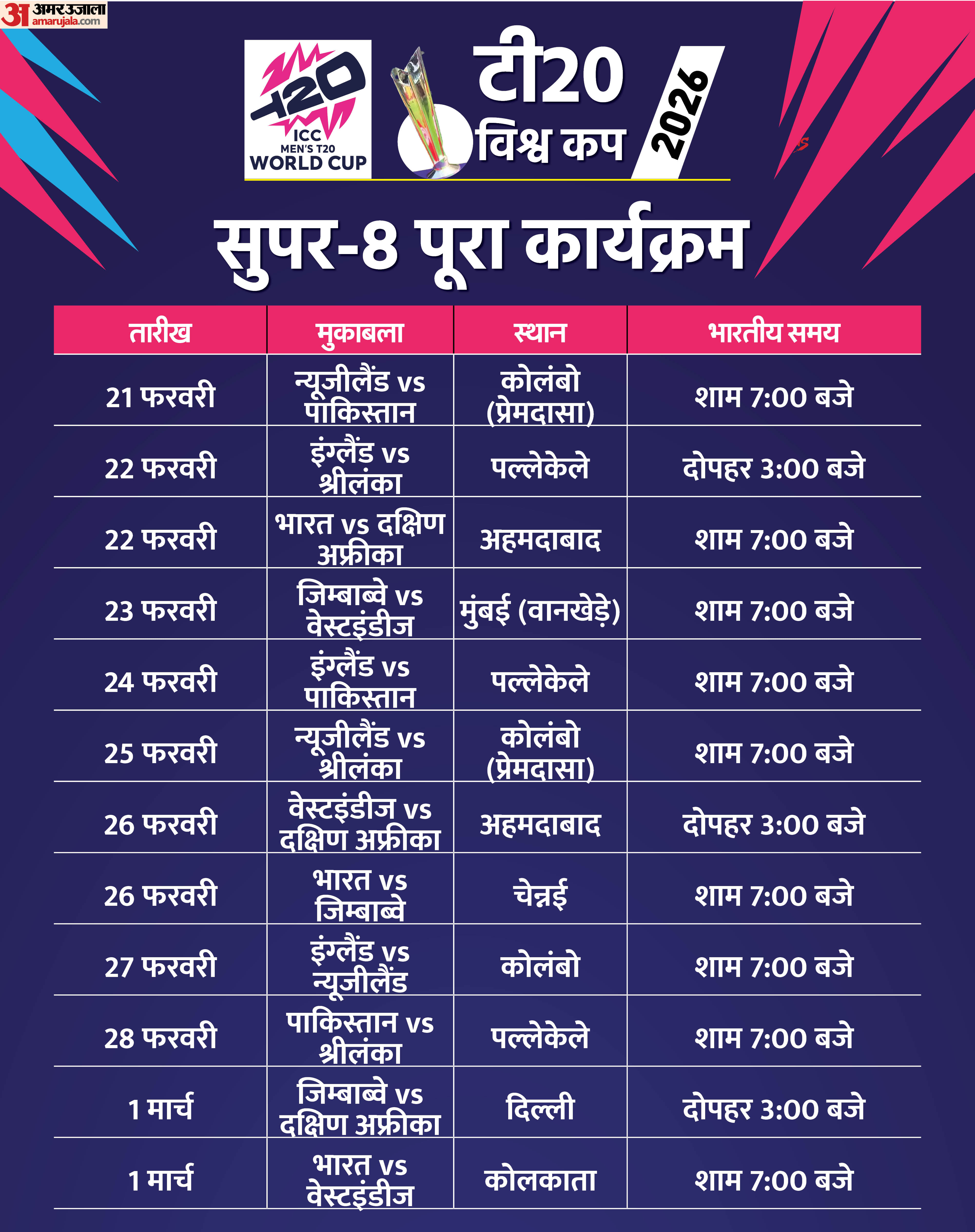 टी20 विश्वकप 2026 सुपर आठ ग्रुप