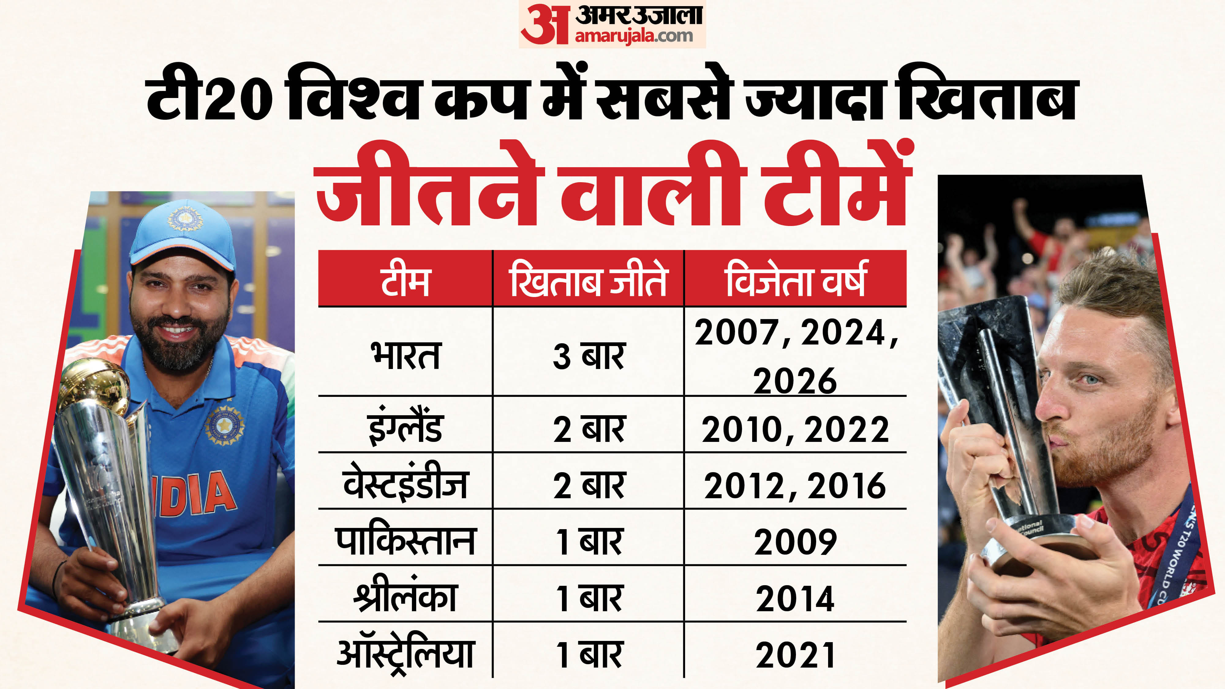 भारत ने अब तक 2007 और 2024 और 2026 में, यानी तीन बार टी20 विश्वकप का खिताब अपने नाम किया है। 2024 में वेस्टइंडीज में खेले गए फाइनल में दक्षिण अफ्रीका को सात रन से हराकर भारत ने 11 साल का आईसीसी ट्रॉफी सूखा भी खत्म किया था। भारत के अलावा वेस्टइंडीज और इंग्लैंड ने भी दो-दो बार खिताब अपने नाम किया है।
