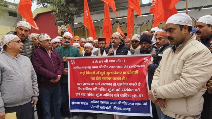 दिल्ली में धार्मिक स्थल की भूमि वापसी की मांग के लिए पदायात्रा निकालते श्रद्धालु। स्रोत जागरूक