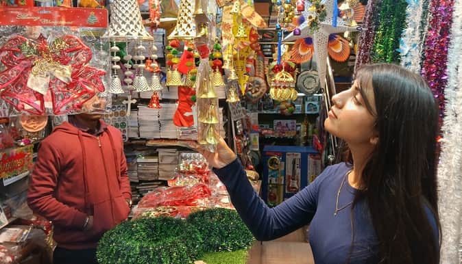 क्रिसमस पर्व की तैयारियों के तहत धर्मपुर बाजार से उपहार सामग्री की खरीदारी करती युवती।--संवाद