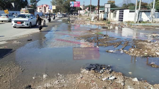 Dehradun News: नाला ओवरफ्लो होने से सड़क पर फैला गंदा पानी