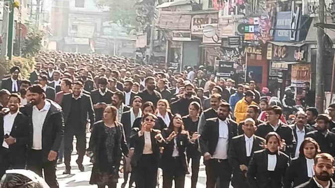 Dehradun: चेंबर निर्माण की मांग को लेकर राजधानी में फिर वकीलों का विरोध-प्रदर्शन, घंटाघर पर किया चक्काजाम