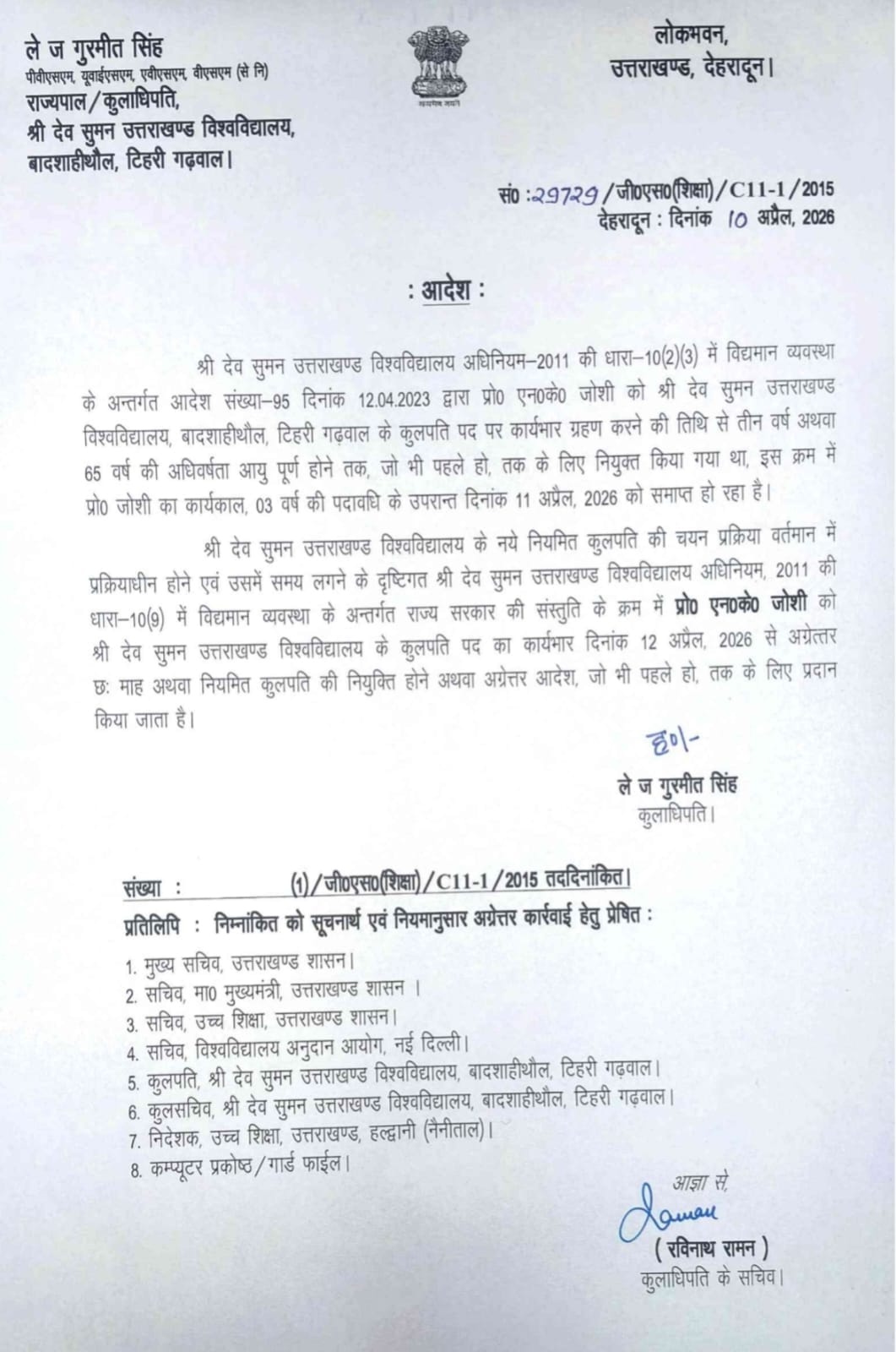 Uttarakhand News: श्रीदेव सुमन विवि के कुलपति प्रो. एनके जोशी का कार्यकाल छह माह बढ़ा, आदेश जारी