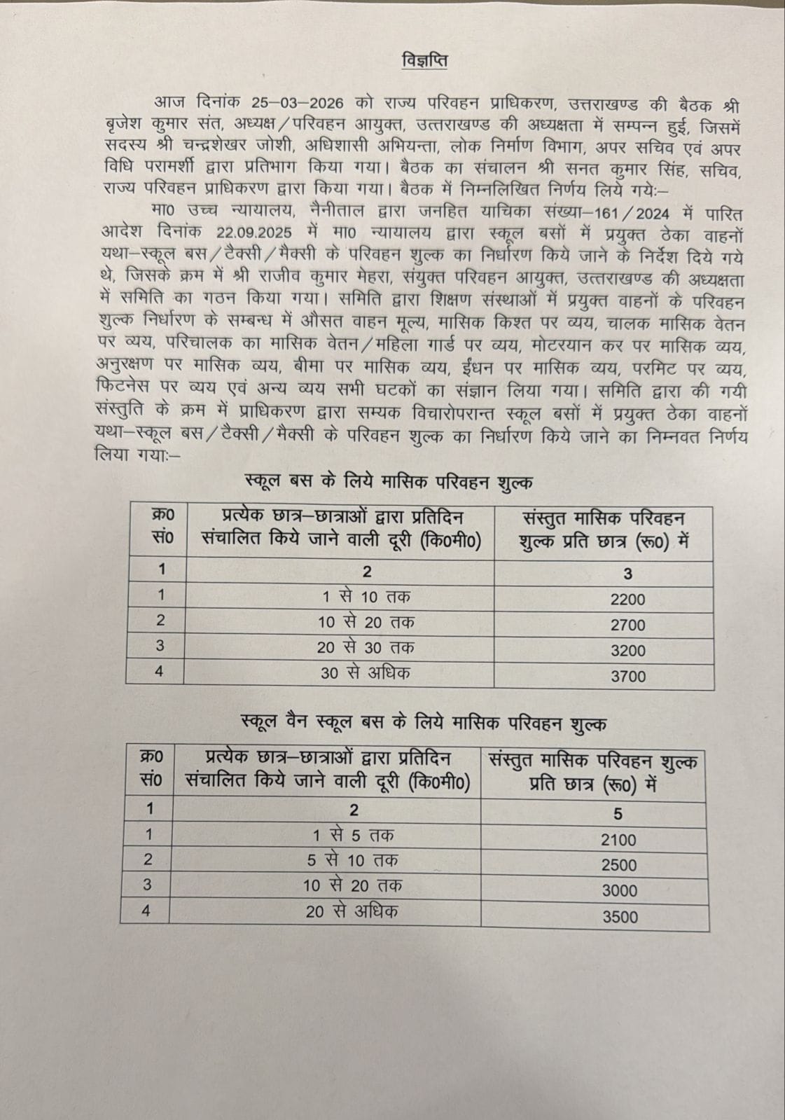 उत्तराखंड में अब स्कूल बस और स्कूल वैन का किराया तय हो गया है। राज्य परिवहन प्राधिकरण ने पहली बार किराया तय किया है। अब स्कूलों को इसी के अनुसार किराया लेना होगा।