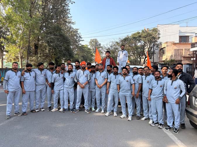 देहरादून रवाना होने के दौरान मौजूद बजरंग दल कार्यकर्ता। स्रोत दल