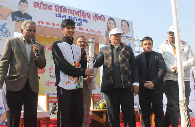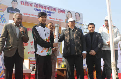परेड ग्राउंड में आयोजित सांसद चैंपियनशिप ट्राफी खेल महाकुंभ के शुभारंभ अवसर पर खिलाड़ी को मशा