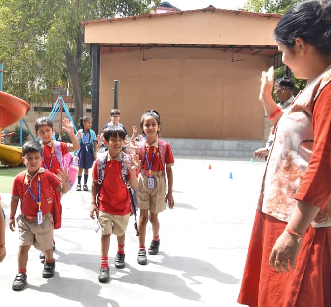 फरीदाबाद एनआईटी दो स्थित निजी स्कूल में प्रवेश लेने के बाद स्कूल पहुचें बच्चों का स्वागत करती