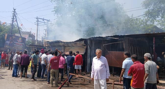 फरीदाबाद प्रेस कॉलोनी में सड़क किनारे टीन शेड से बनी दुकानों में लगी आग । संवाद