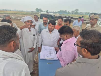 गांव मोहना में ग्रीन एक्सप्रेस-वे पर बनाए जा रहे यमुना पुल के लिए तैयार किए जा रहे बांध का मौके
