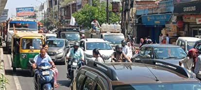 मोदीनगर में अंबर सिनेमा के सामने दिल्ली मेरठ मार्ग पर लगा जाम। संवाद