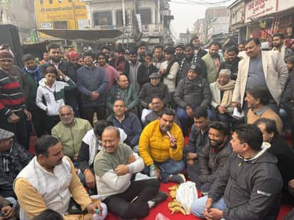 पैठ बाजार के विरोध में धरना देते व्यापारी। संवाद
