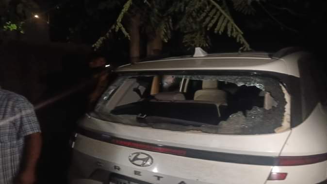 गोली लगने से टूटा कार का शीशा
